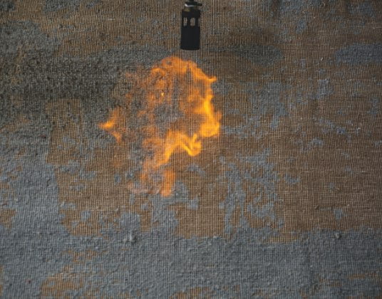Geri yakma işlemi oldukça basittir. Alevden uzağa bir halı serilir veya üzerine bir meşale alınır. Alev, halının arkasını yakarak gevşek telleri temizler, ancak daha da önemlisi tüm düğümlerini yerinde sıkılaştırır. Isıya maruz kaldığında, iplik geri teper ve büzülür, bu da dayanıklılığı büyük ölçüde artırır.