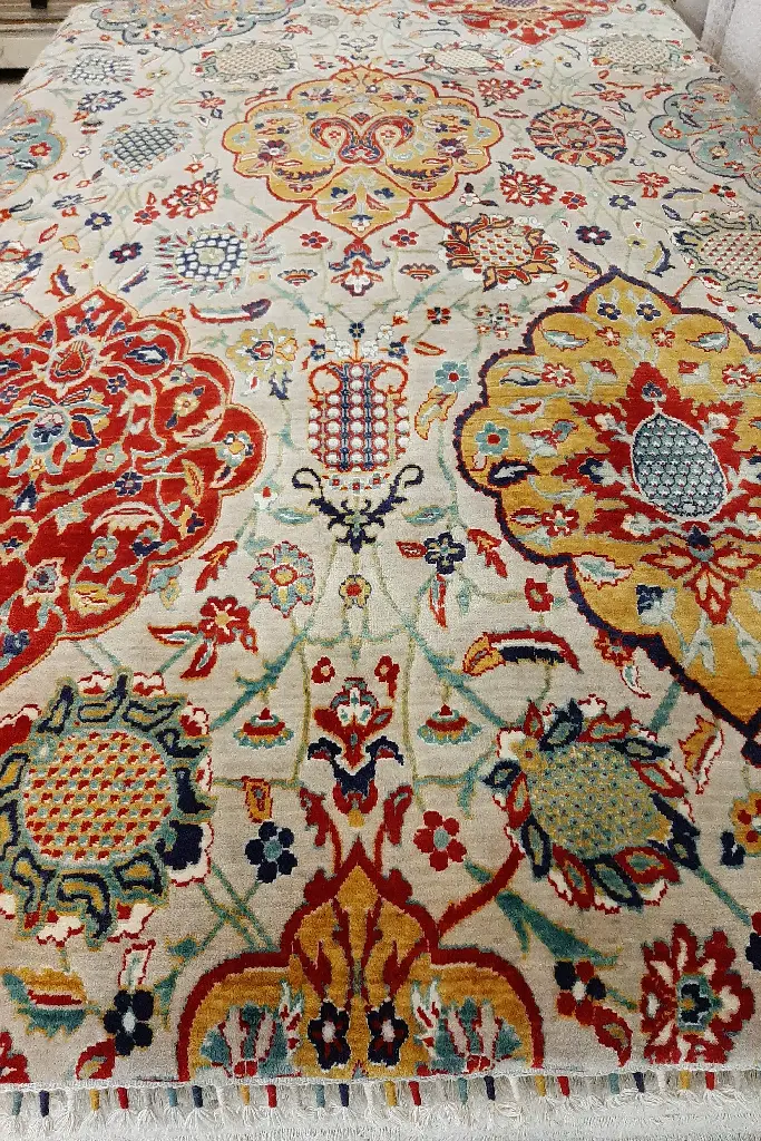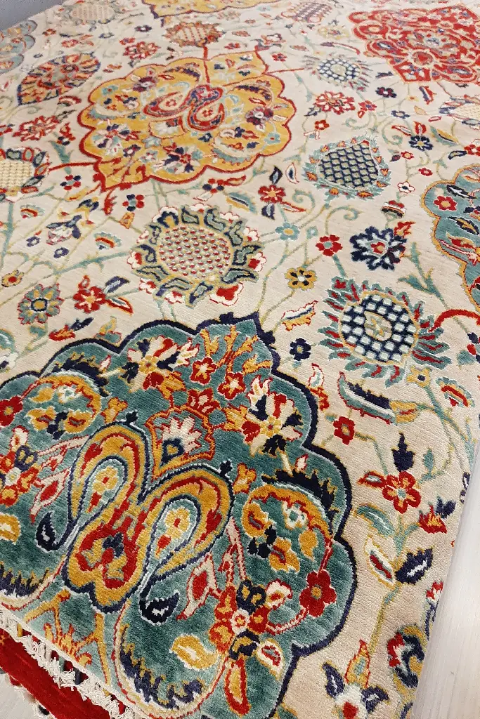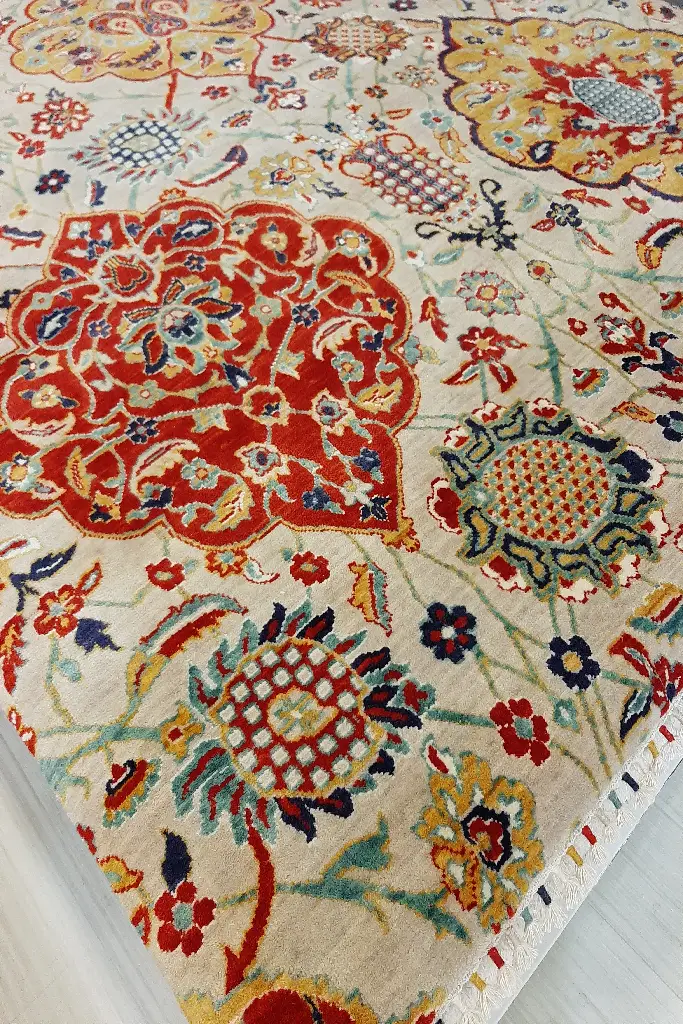 Geleneksel Anadolu desenlerine sahip yüksek kaliteli malzeme Yeni Zelanda yünü ve viskon iplikle el emeği kullanılarak dokunan renkli özel tezgah halısı (kara tezgah halısı). Yün halı nemi, tozu emer, küflenmeden kurur, alerjenden korur, viskon ise yumuşak doku katar. Suya, kire, lekelere karşı dayanıklıdır. Orta yumuşak, klasik desenlidir, mat görünür. Çevre ve sağlık dostudur.