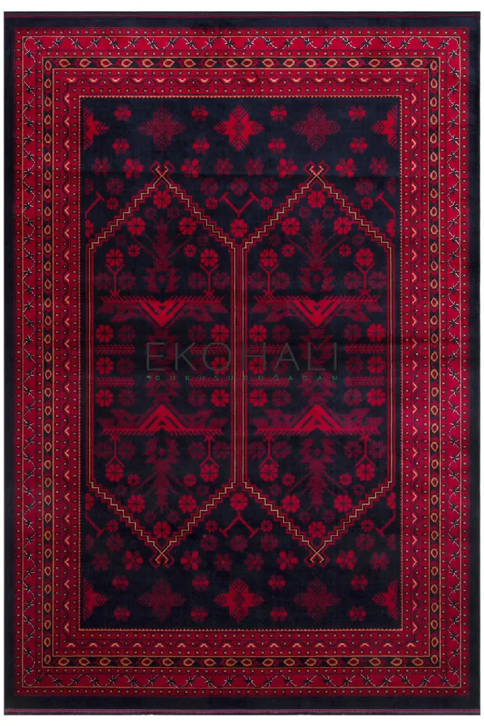 Eko Halı Herat 01 Navy Nostaljik Afgan Desenli İnce Makine Halısı